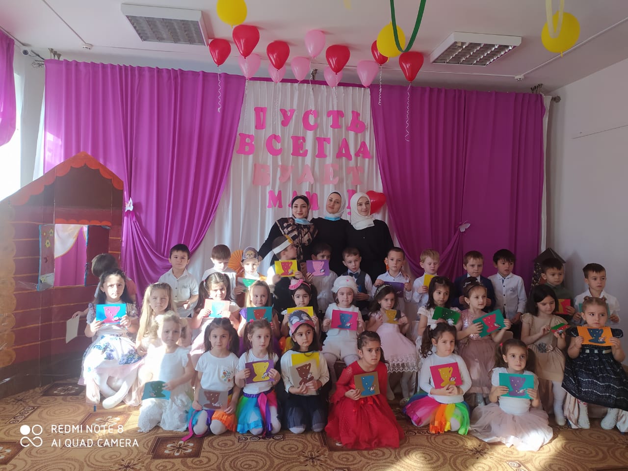 дети вместе с воспитателями подготовили для своих милых и любимым мам праздничный концерт, посвященный Дню матери. Вместе с мамами ребята танцевали, рисовали, играли в музыкальные игры, а еще ребята исполнили для мам очень нежные и трогательные песни, от которых мамы даже немного прослезились, но это были слезы счастья, счастья от того, что у них есть самые дорогие и единственные на свете их дочки, и сыночки.