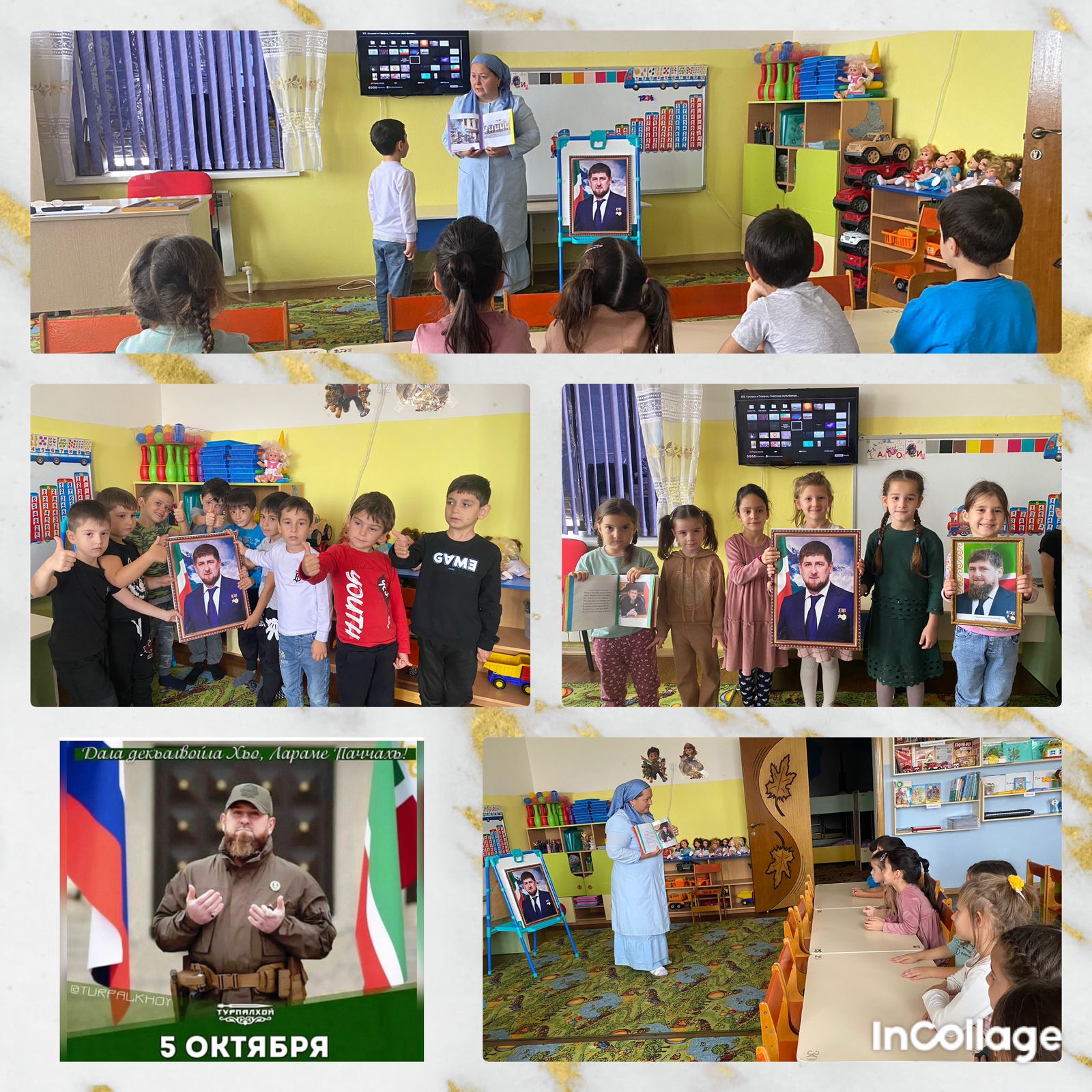 05.10.2023В МБДОУ "Детский сад № 4 "Колокольчики" с.п. Надтеречное" 04.10.2023 года во всех возрастных группах проведены беседы,посвященные к празднованию Дня рождения Главы ЧР, Героя России Р.А. Кадырова.